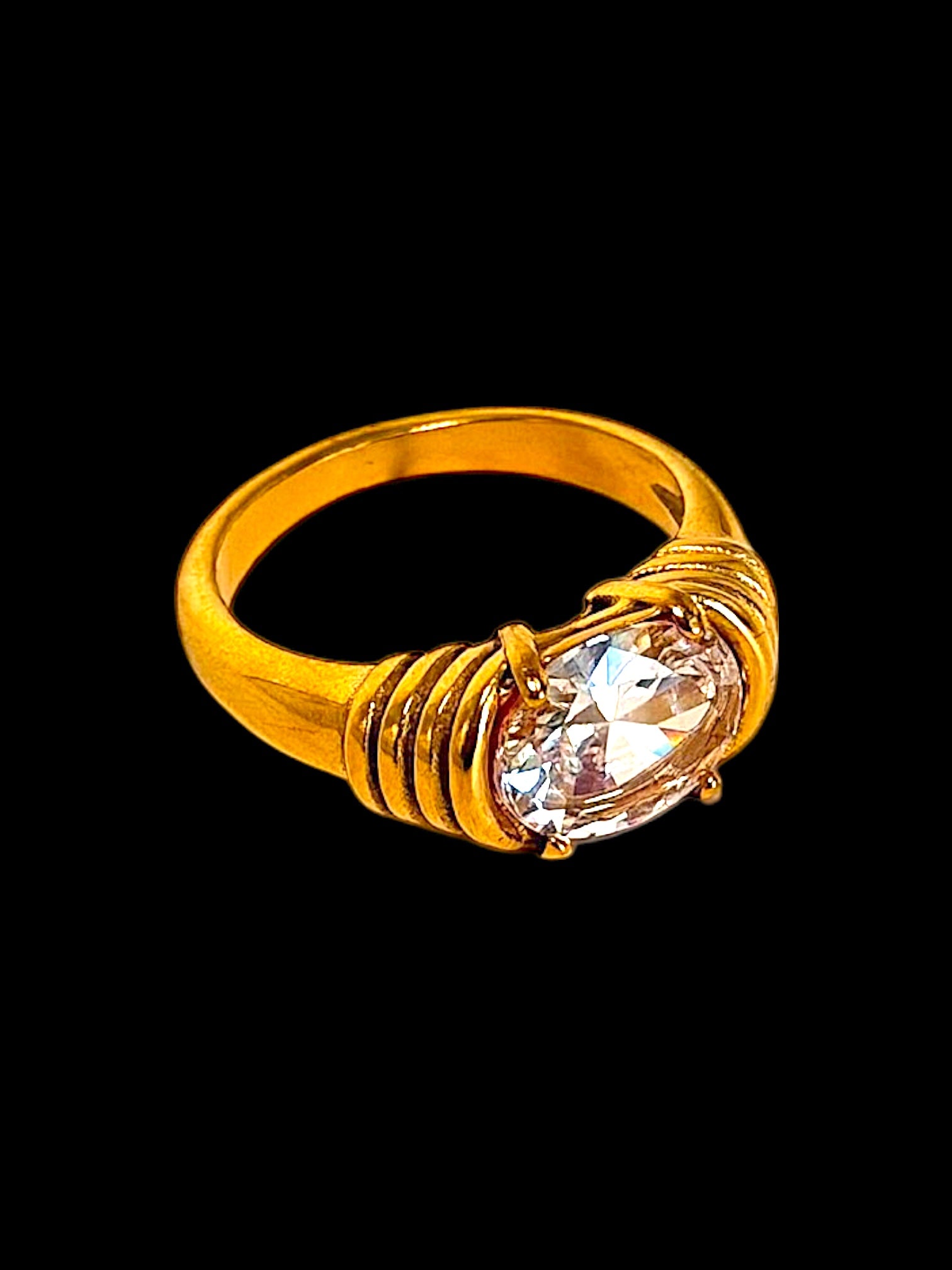 Anillo vanguardista y clásico con zirconia ovalada en acero inoxidable