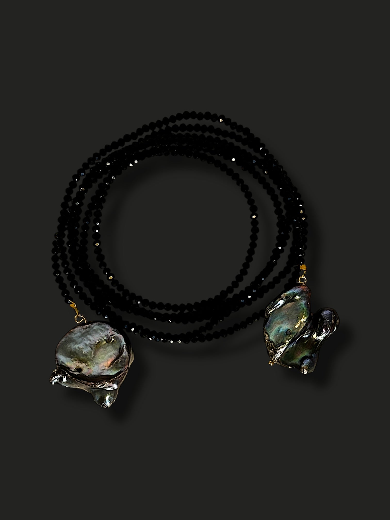 Corbatin de cristales en tono negro con perla en azul, largo.
