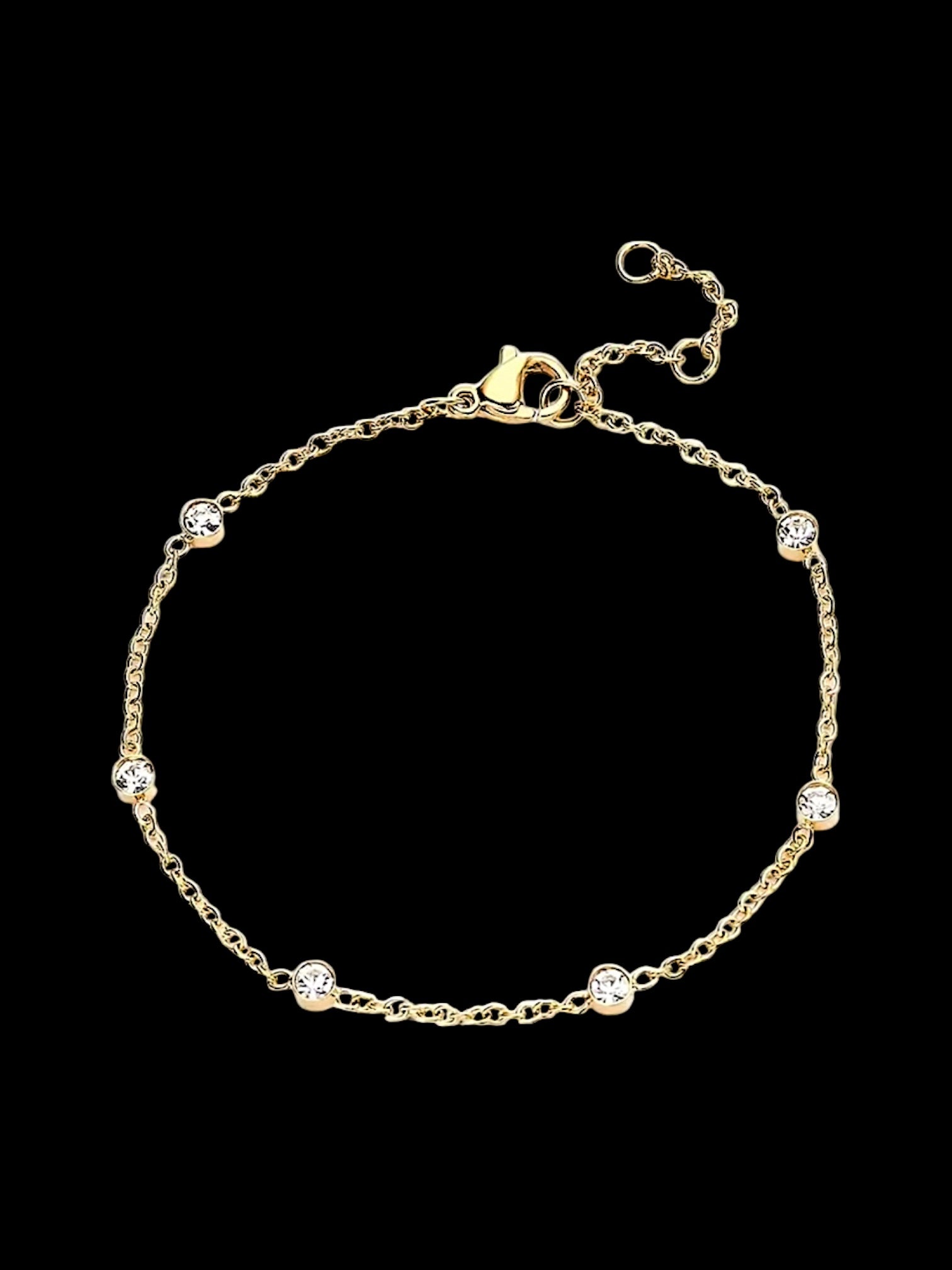 Pulsera decorada con 6 zirconias circulares, perfecta por su diseño minilamista. Waterpoof, tu material favorito, acero inoxidable.