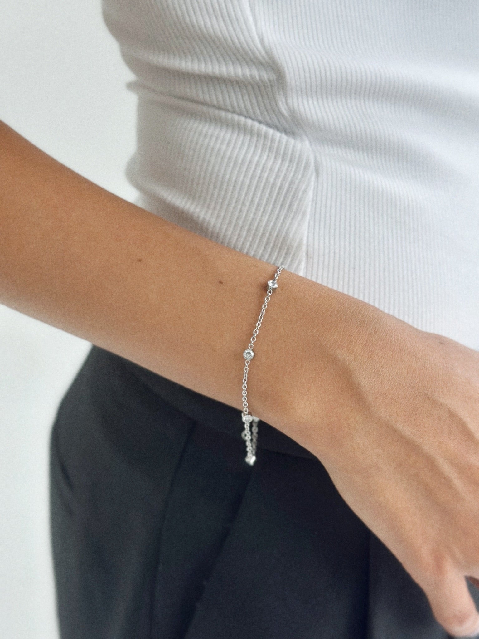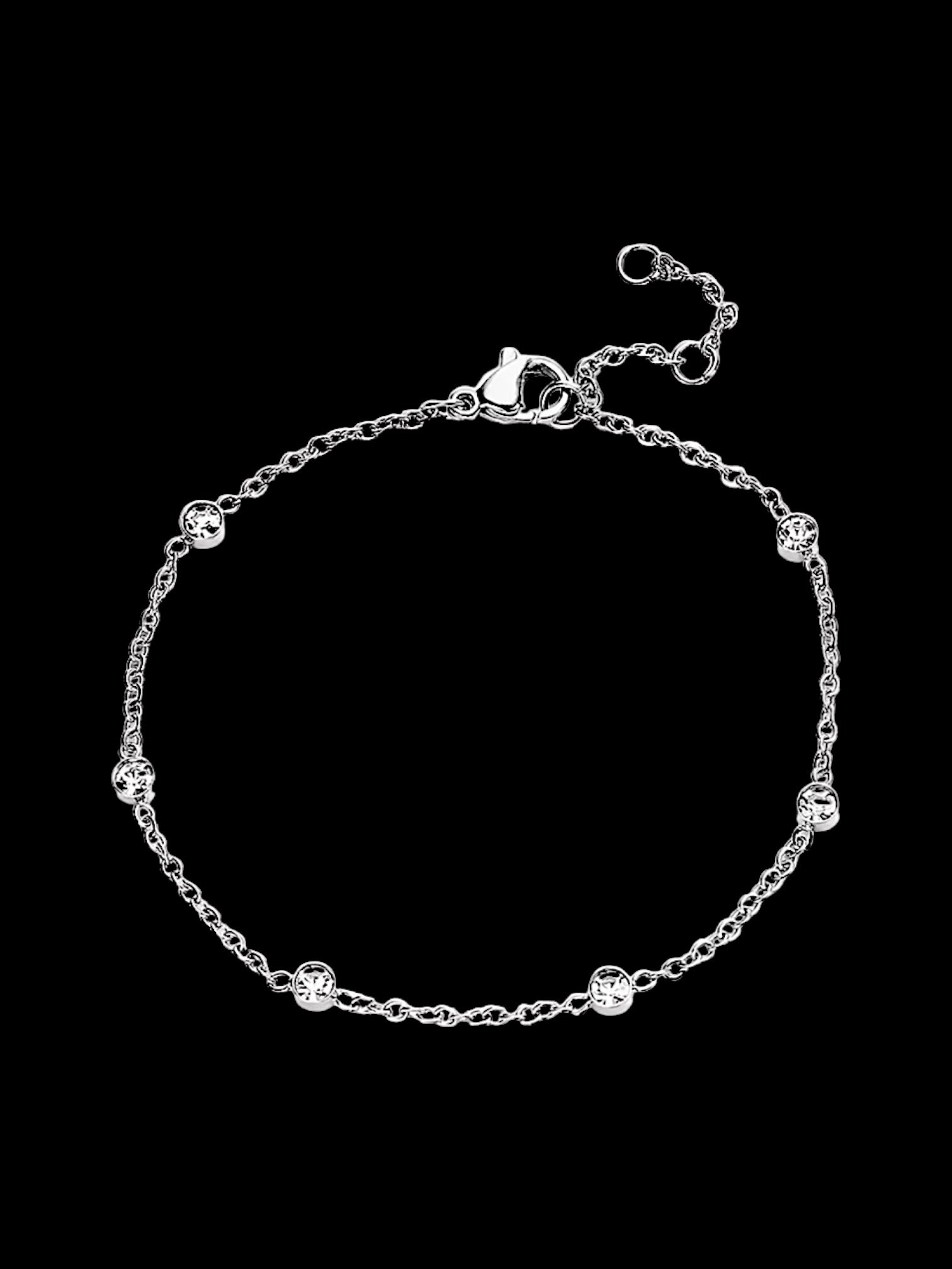 Pulsera decorada con 6 zirconias circulares, perfecta por su diseño minilamista. Waterpoof, tu material favorito, acero inoxidable.
