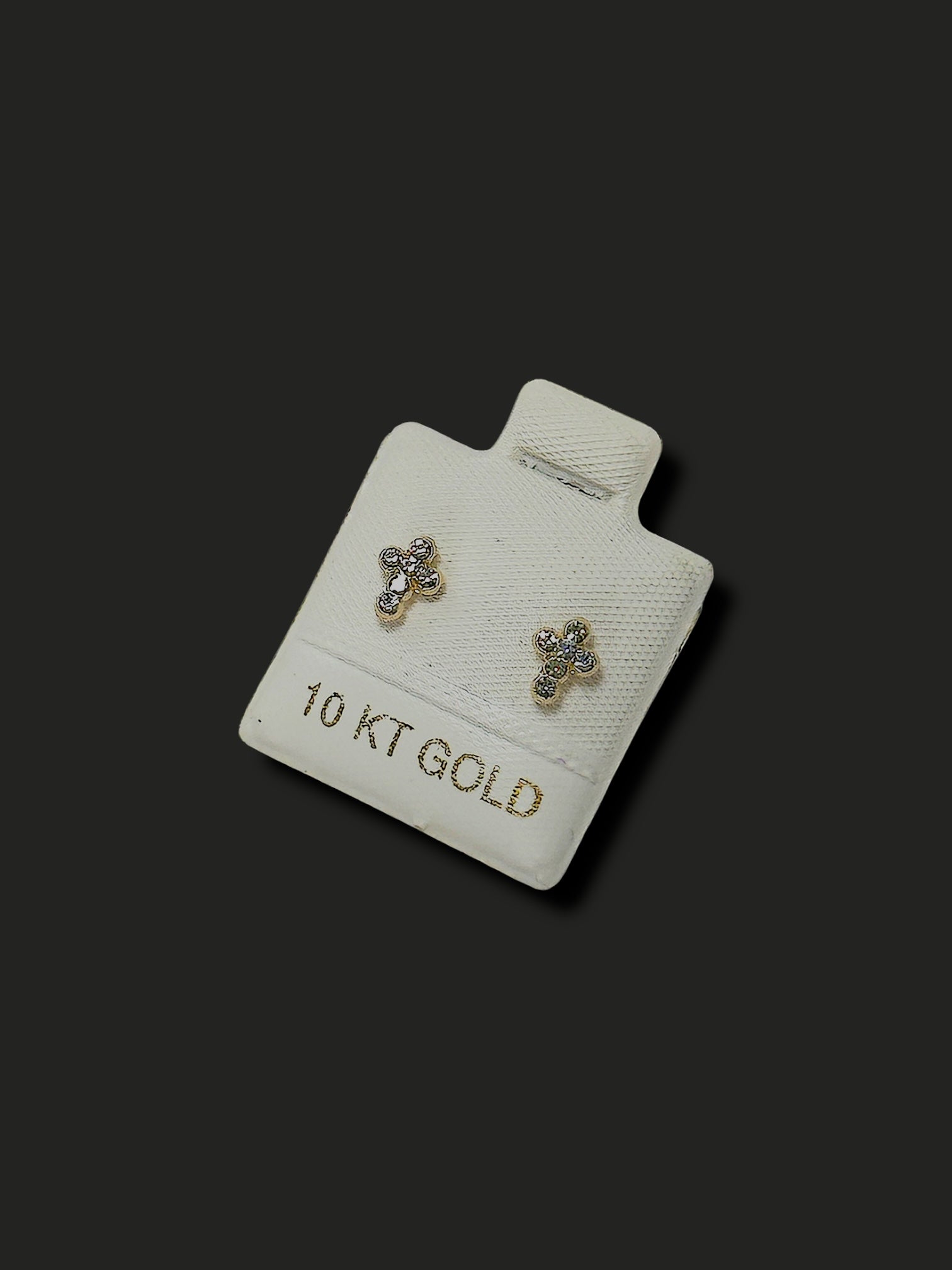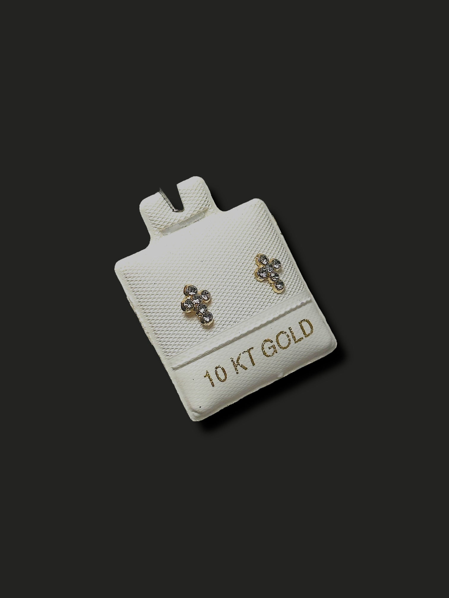 Diseño de broquel en forma de cruz adornado con zirconias de oro 10k