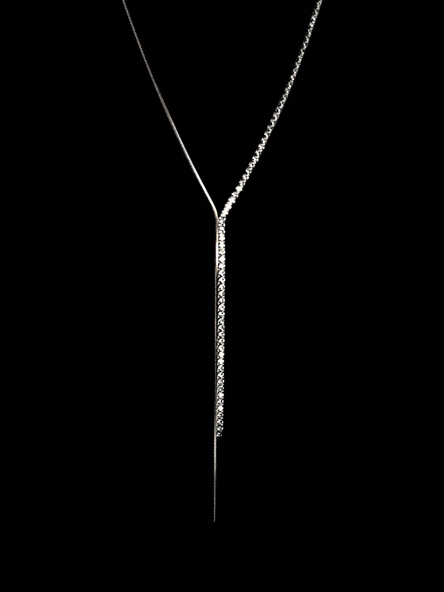 Corbatin irregular con mitad cadena lisa minimalista y mitad zirconias acero inoxidable