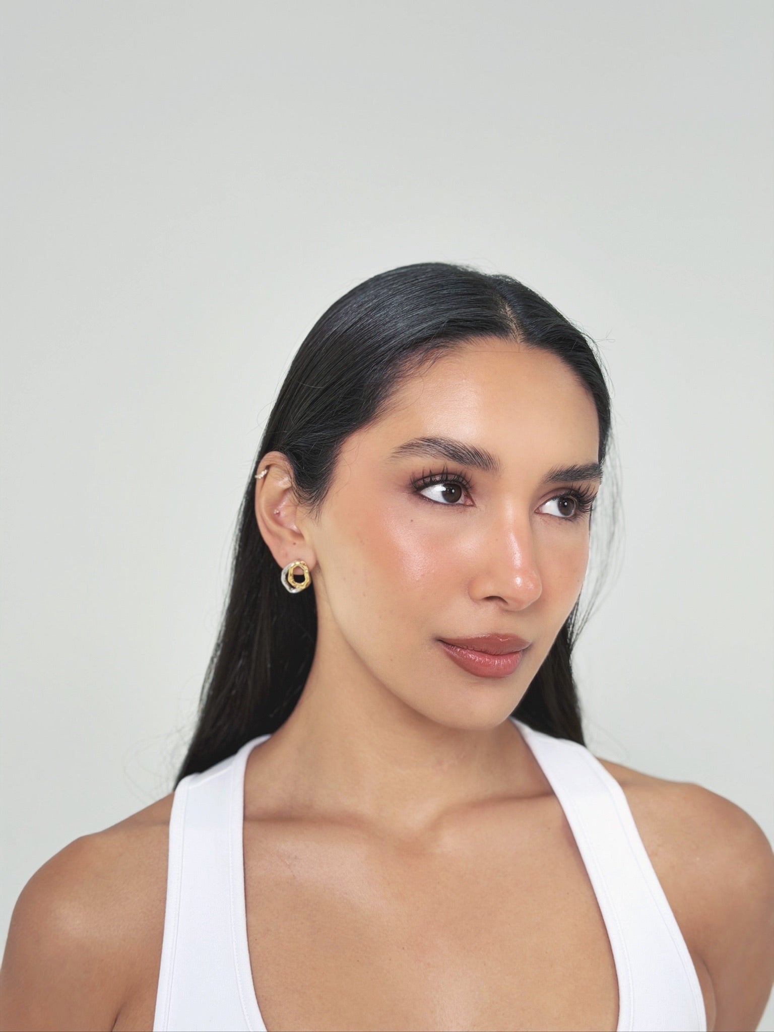 Aretes waterproof en diseño de broquel, dobles y bicolor.