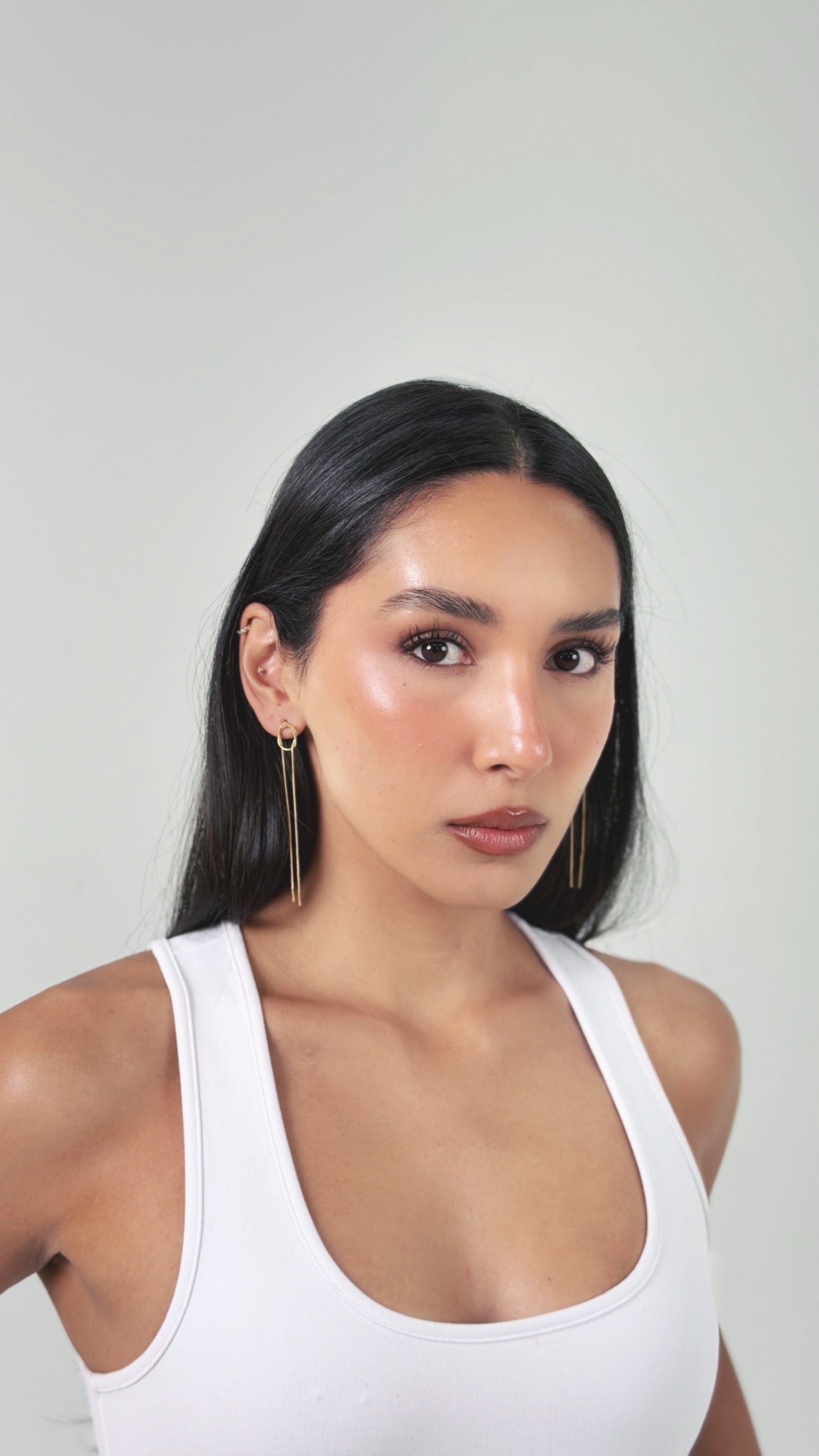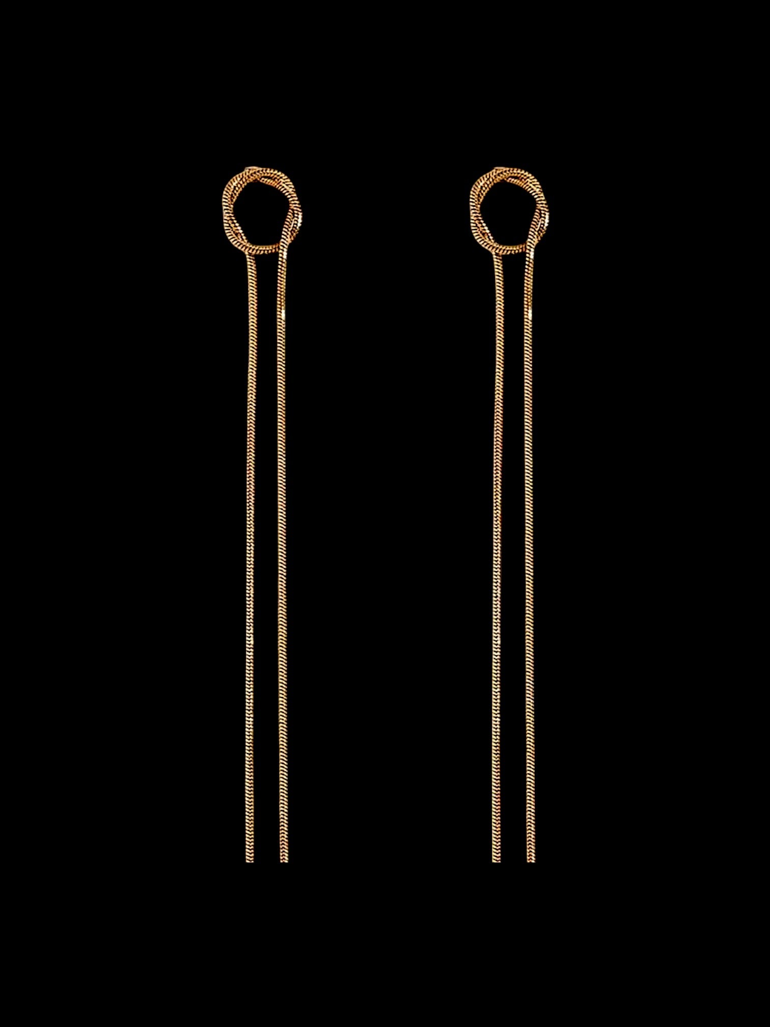 Aretes waterproof con diseño de cadenas finas formando un nudo.