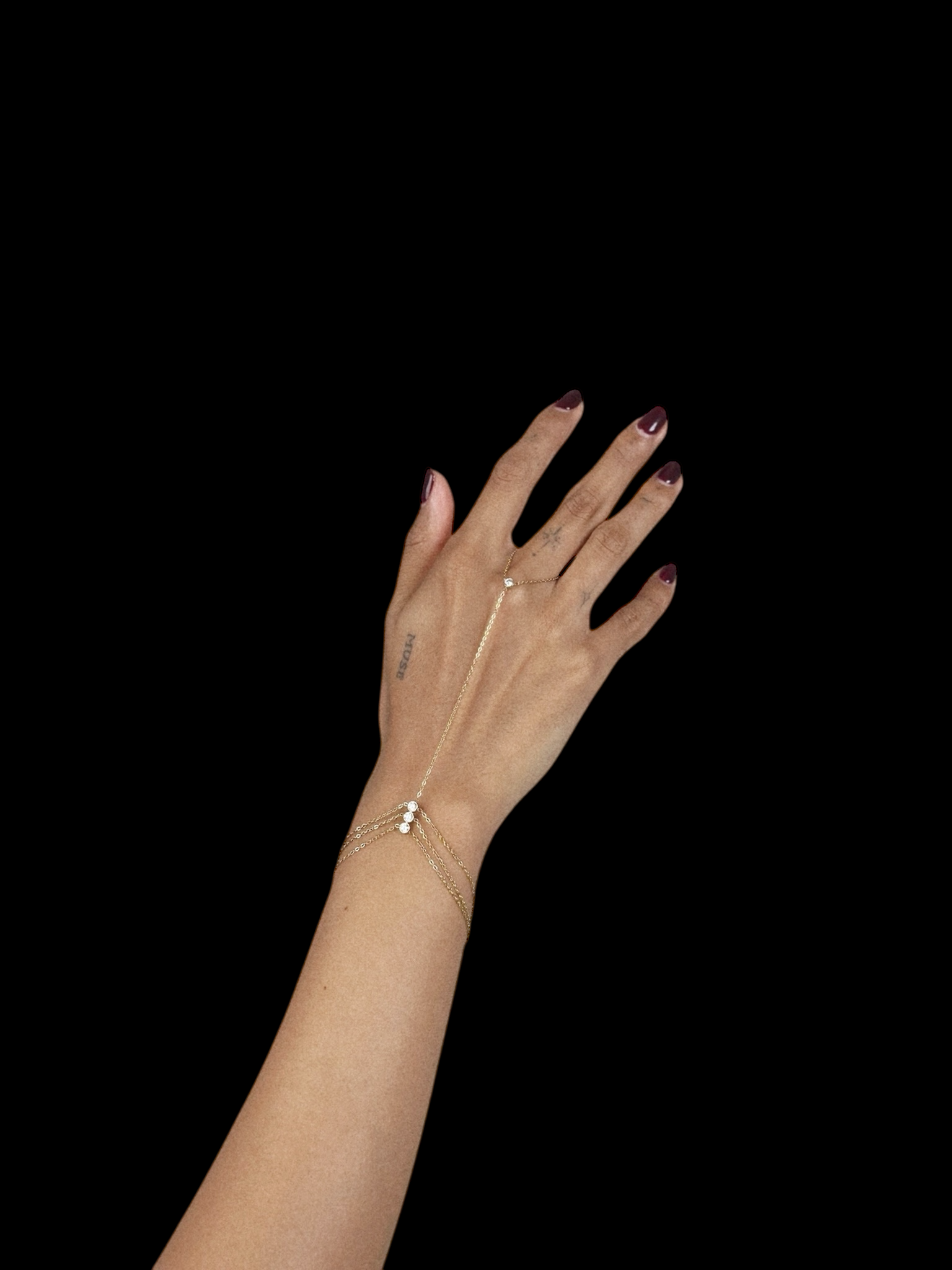 Pulsera anillo con zirconias y triple cadena rodeando la muñeca. Waterpoof, tu material favorito, acero inoxidable.