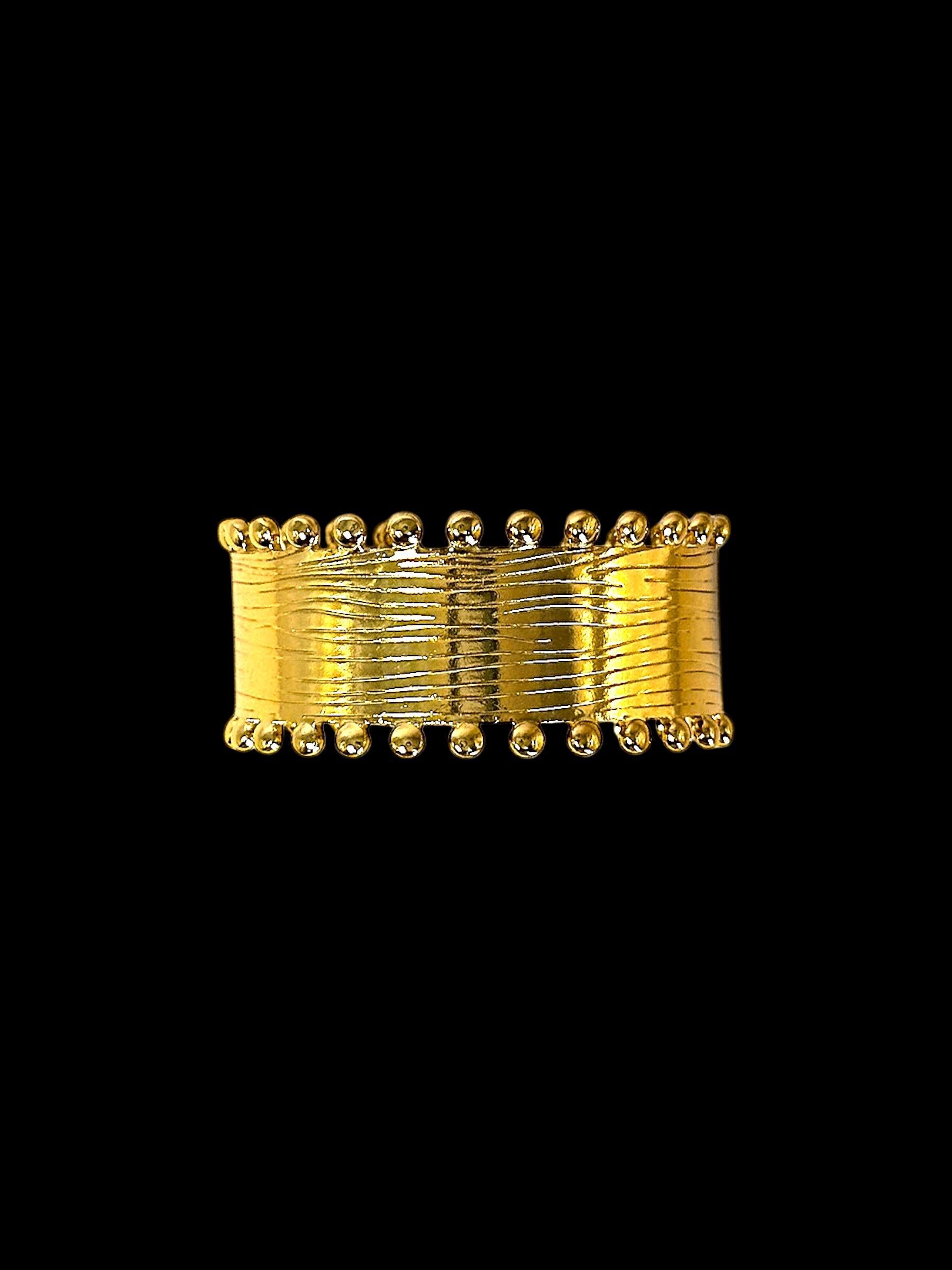 Brazalete con diseño único y vanguardista con textura y bolitas soldadas. Waterpoof, tu material favorito, acero inoxidable.